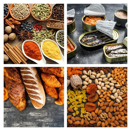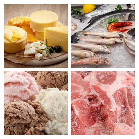 All kinds of meat, fish, poultry, vegetables, fruits, charcuterie, ice cream, and dairy products (including a wide selection of cheeses). Our team had previous experience in UK food processing with European leading manufacturers such as Frigoscandia, Dornay Foods.